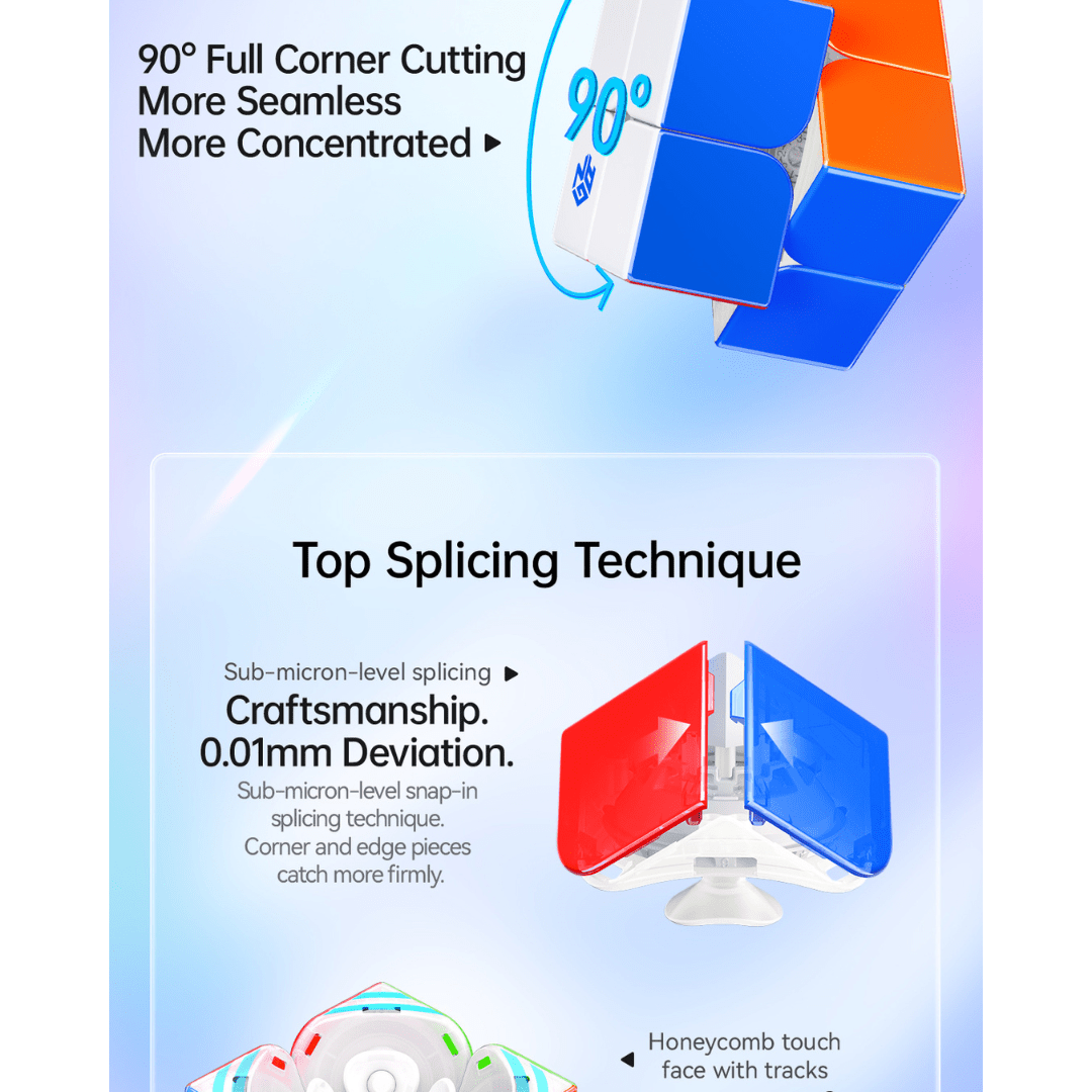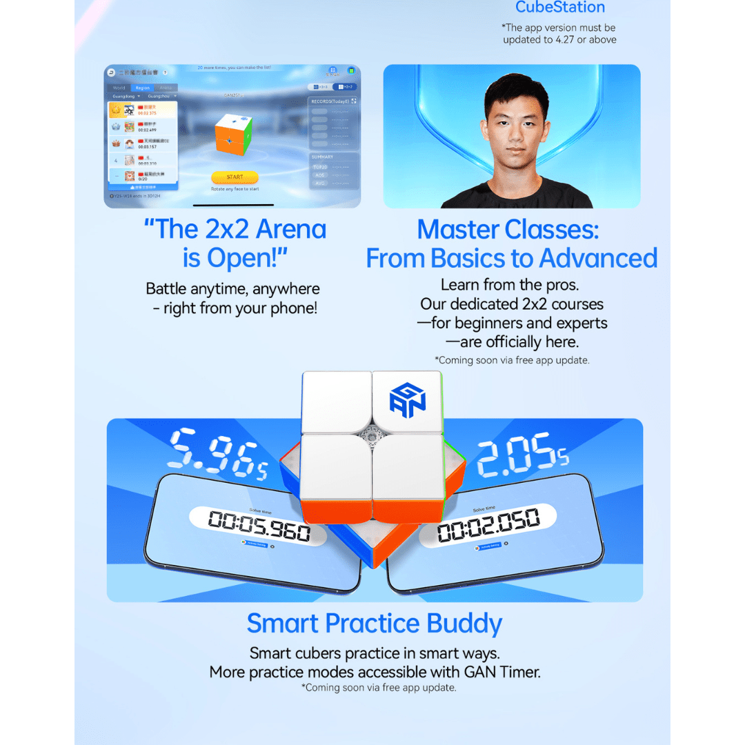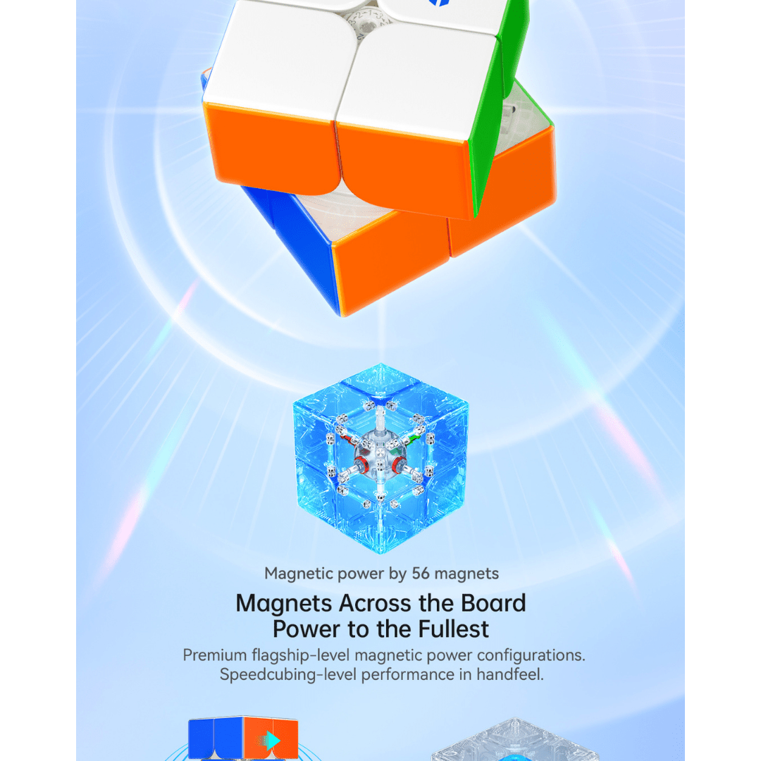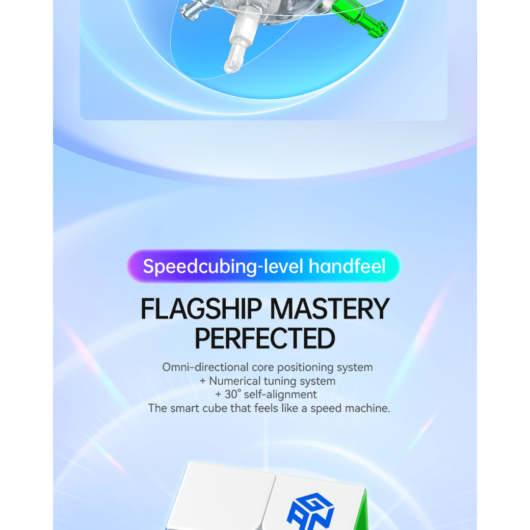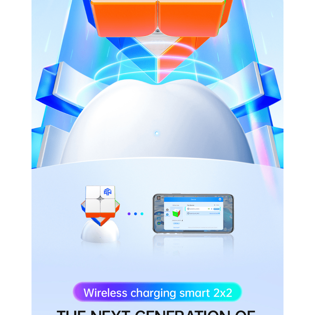 The GAN 251 UI is a wireless charging, smart 2x2 speed cube designed to bridge the gap between high end performance and smartcube app training. This 51mm 2x2 combines advanced MagLev speed with a custom smart ball core to provide a stable, flagship level feel.
