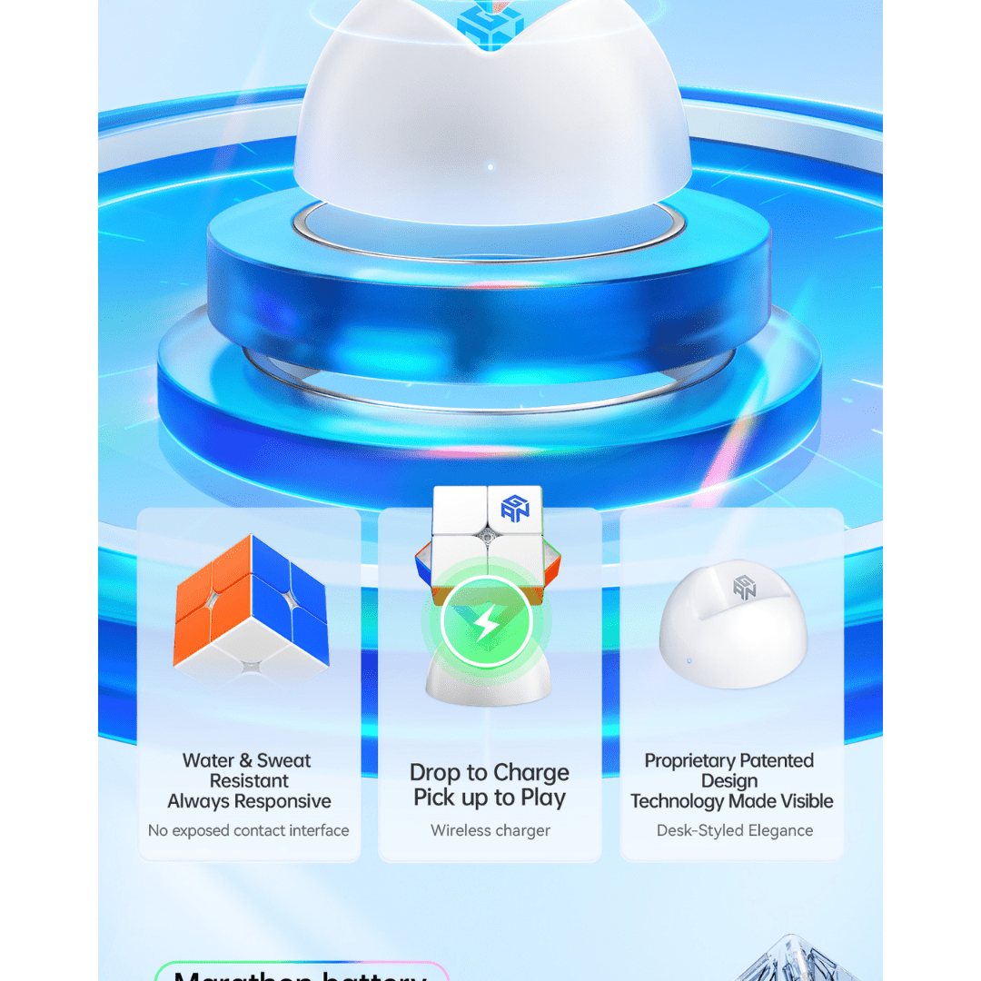 Leading the market with wireless fast charging, the cube reaches full power in approximately 2.5 hours via its proprietary charger base. A single charge provides up to 30 hours of nonstop solving practice. The design is also water and sweat-resistant, ensuring the internal sensors remain responsive during intense sessions.