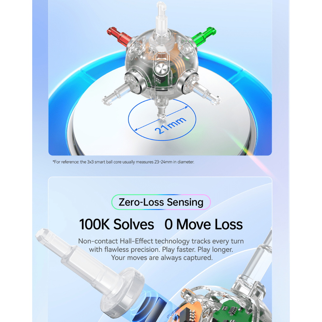 Equipped with non contact, hall effect technology (Gamers and RC fans know) and a high-precision gyroscope, the GAN 251 UI captures every turn and orientation change with flawless precision. These movements sync in real time to the CubeStation app, allowing you to join a community of over 1.5 million players, access master classes, and review detailed solve statistics.